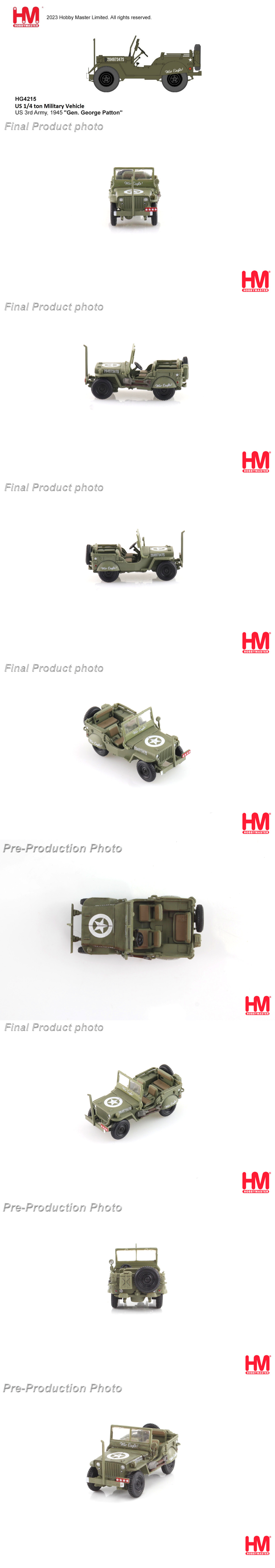 - home > 밀리터리 기본분류 > 모형제조사 > 1.HOBBY MASTER > 하비마스터 1/72 U.S. 1/4 ton Military Vehicle US 3rd Army, 1945 Gen. George Patton (HM419713) 군용트럭 모형 디오라마