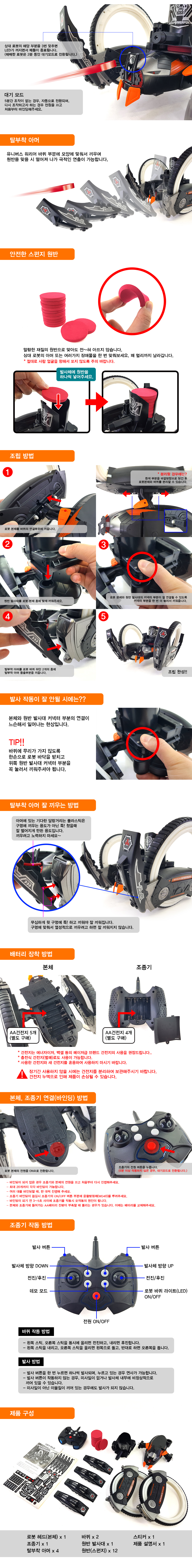 - 구성품 : 2.4GHz 로봇 본체 x 1 (1.5V AA size 건전지 x 5개 사용 / * 건전지 별매)